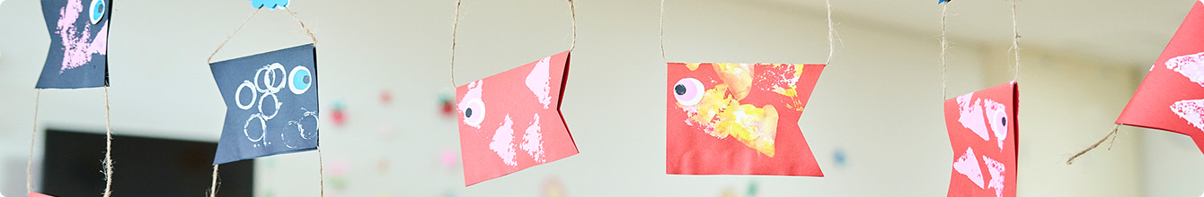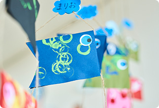 季節や成長に合わせたスタンピング・シール貼り・お絵かきなどの造形活動を通して、創造力・集中力・手先の感覚を育んでいます。